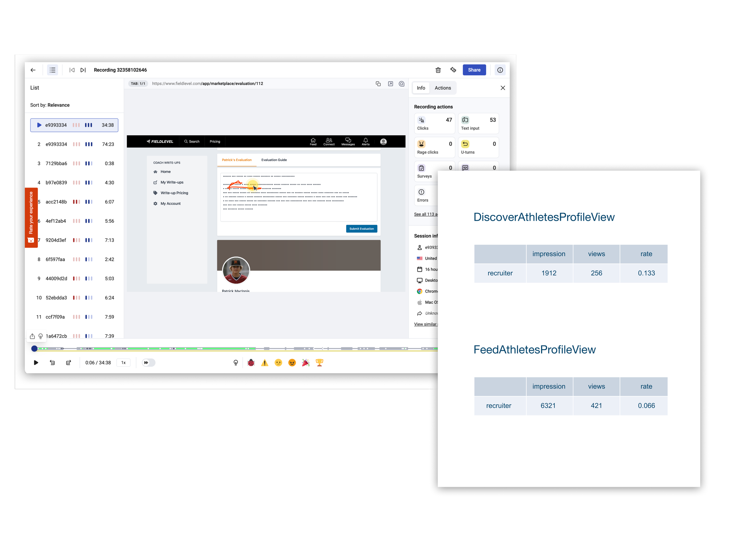 We generally will let the test run for about 3-5 days before we review the data. What we observed was an immediate 30% spike in video viewed by unique college coaches. But there was also an unexpected behavior happening with these new changes. Since athletes and their videos were more visible and accessible it decreased the need for coaches to click to view the athlete’s profile. Thus athlete profile views began to decrease by 15%.