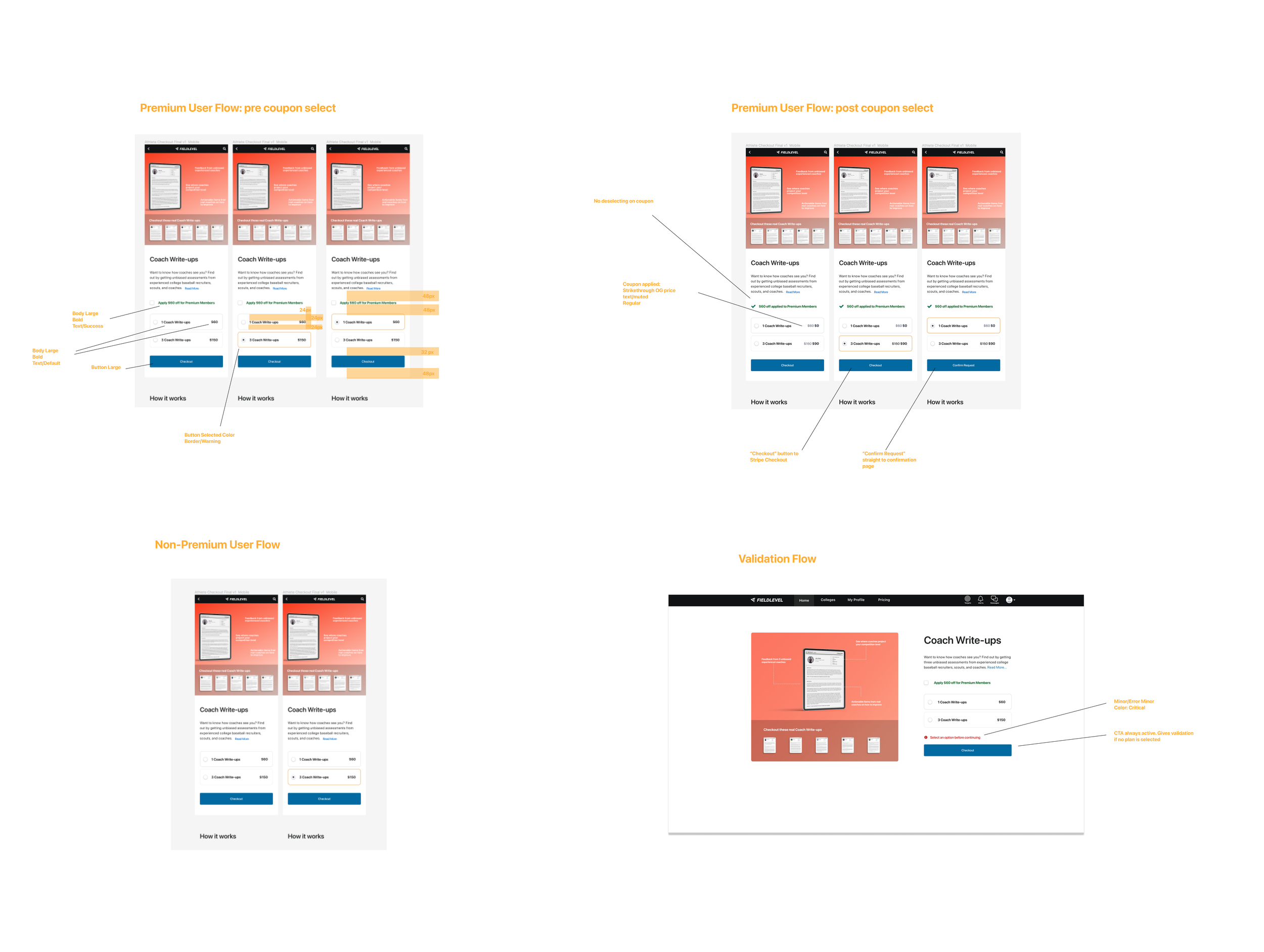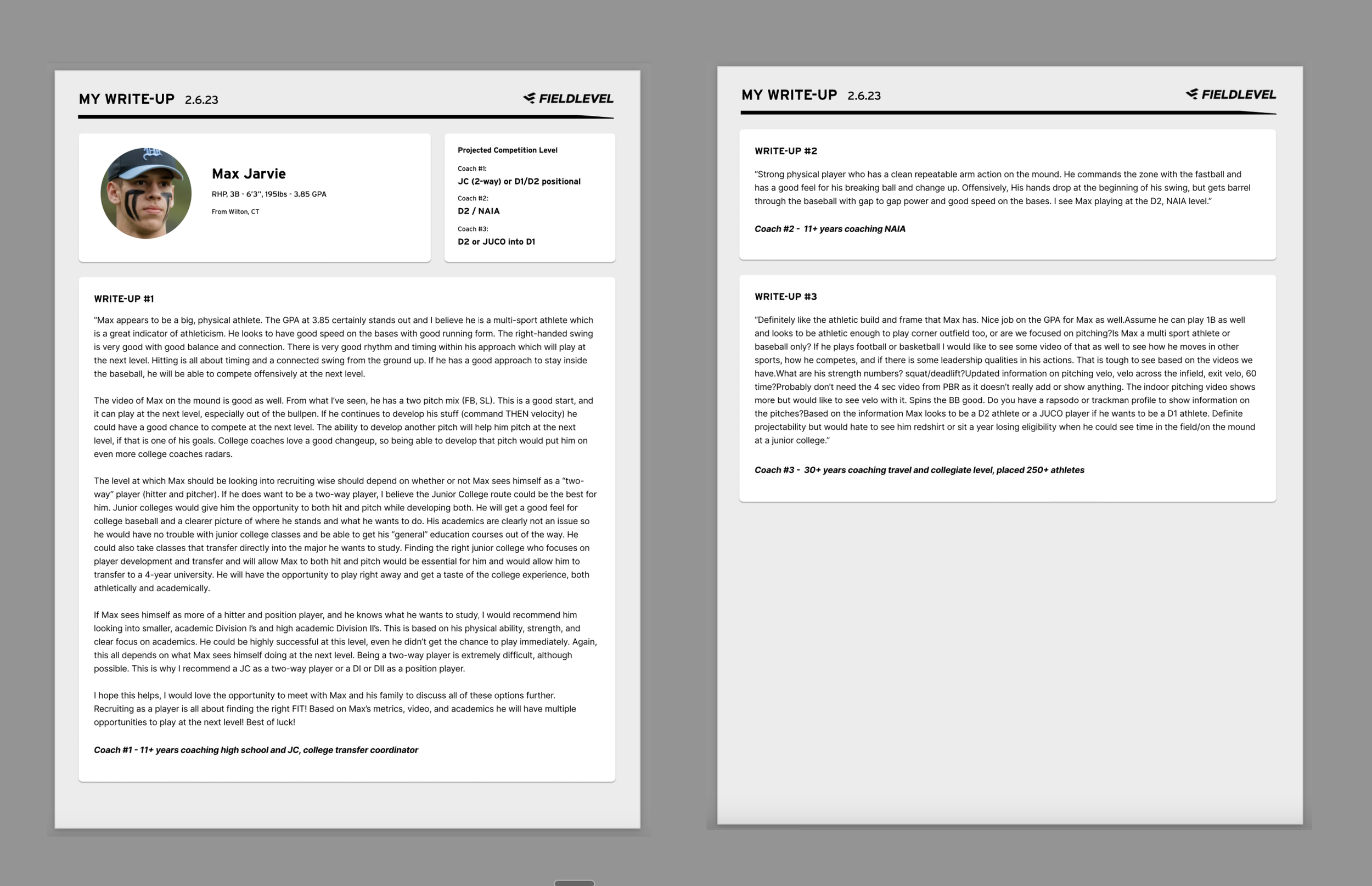 Our goal for this project was to prove that we could make a fully self-sustainable feature in a gig-economy marketplace. This stemmed from initial ideas of college coaches offering guidance services to athletes and parents for a fee. Before our team took on this project, another team had done a proof of concept manual booking experience where athletes and parents could reserve a slot on a college coach's calendar and have a 45-minute recruiting guidance phone call. Early results and customer/coach satisfactions were very positive. So our team began trying to figure out how to make this coach booking system into a fully self-sustainable feature. What we came to learn quickly is that building out even an MVP self-sustaining booking feature was going to be a huge undertaking that could easily involve integrating with 3rd party companies to handle the calendar management, payment methods, and video conferencing software. We had already to begun doing user interviews and mapping out a potential roadmap. One day we had a transformative call with a parent who had been a participant in the proof of concept test. The parent had stated that all they wanted is "honest feedback from a coach on where their child stood" and that they’d love it in some sort of a “write-up”. With the possibility that this booking project was going to be a non-starter, we decided to pivot and explore if this write-up idea could be a viable gig-economy feature. We began running tests and a proof of concept to see if college coaches would do these write-ups and if they would be of value to athletes and parents. It was a hit! We felt we had something and made a full pivot toward Write-ups being the 1st feature that we’d build to try a make a fully self-sustaining gig-economy feature. We mapped out a game plan and began building sales pages, a dashboard list, integrated with Stripe as a payment system, and all essential reminders and confirmation emails. By the end of the quarter, we had over 20 fully completed write—ups from paying customers.
